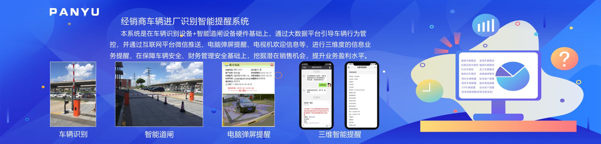 会员俱乐部(会员卡) 会员俱乐部(微信) 车辆识别管控 业务提醒(微信/电脑弹屏/电子看板/语音助手) 微信调查回访评分系统 电子发票下载系统 更多+